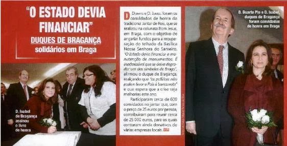 Dom. Duarte e Dona Isabel foram os convidados de honra do tradicional Jantar de Reis, que se realizou na Colunata Bom Jesus, em Braga, com o objectivo de angariar fundos para a recuperação do telhado da Basílica Nossa Senhora do Sameiro.