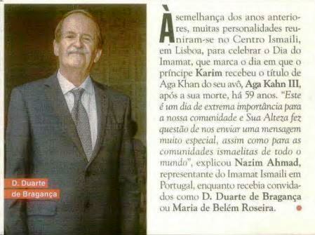 S.A.R., DOM DUARTE DE BRAGANÇA ESTEVE PRESENTE NO DIA DA COMEMORAÇÃO DE IMAMAT NO CENTRO ISMAILI EM LISBOA