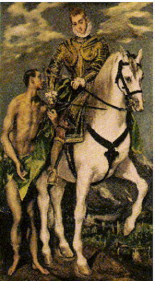 O jovem Martinho não estava insensível á religião pregada, três séculos antes, por um homem bom de Nazaré. Um dia aconteceu um facto que o marcou para toda a vida. Numa noite fria e chuvosa de Inverno, às portas de Amiens (França), Martinho, ia a cavalo, provavelmente, no ano de 338, quando viu um pobre com ar miserável e quase nu, que lhe pediu esmola e Martinho, que não levava consigo qualquer moeda, num gesto de solidariedade, cortou ao meio a sua capa (clâmide) que entregou ao mendigo para se agasalhar. Os seus companheiros de armas riram-se dele, porque ficara com a capa rasgada. Segundo a lenda, de imediato, a chuva parou e os raios de sol irromperam por entre as nuvens. Sinal do céu. Seria milagre?